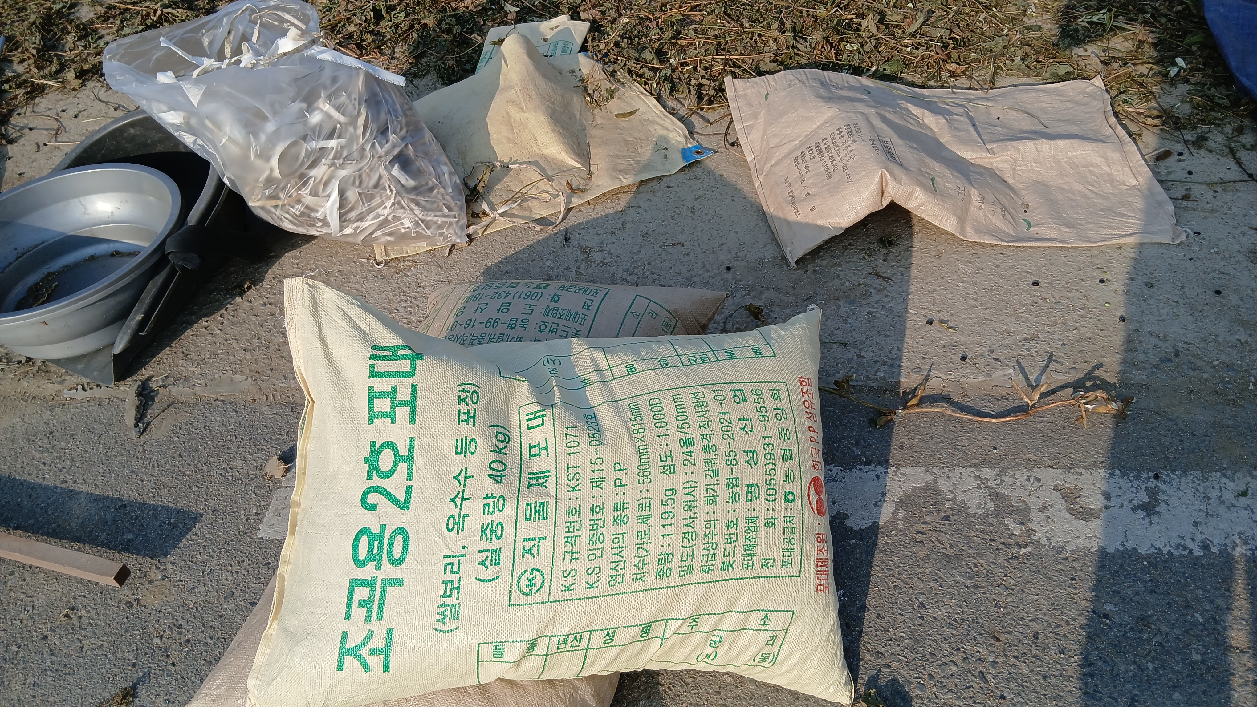 - 마른 콩대를 비닐포대에 넣고 막대기로 두드리거나 밟기만 해도 대부분의 콩이 떨어집니다.